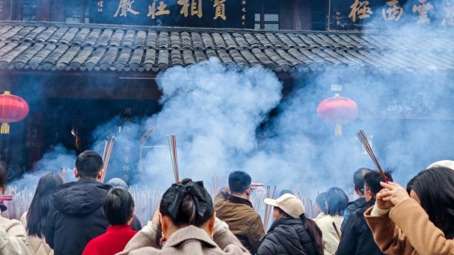 除夕祈福盛况:人山人海香火鼎盛,排队上香迎新年