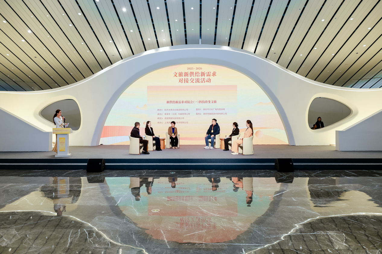 活动还设置了两场“供需对接专场”。在“科技赋能文旅”环节,杭州水秀文化集团、索诺克(北京)科技有限公司、南阳筑屋科技有限公司、上海庆科信息技术有限公司等企业,分别展示了数字水秀、智能投影、模块化建筑、酒店智慧客控等前沿技术应用。