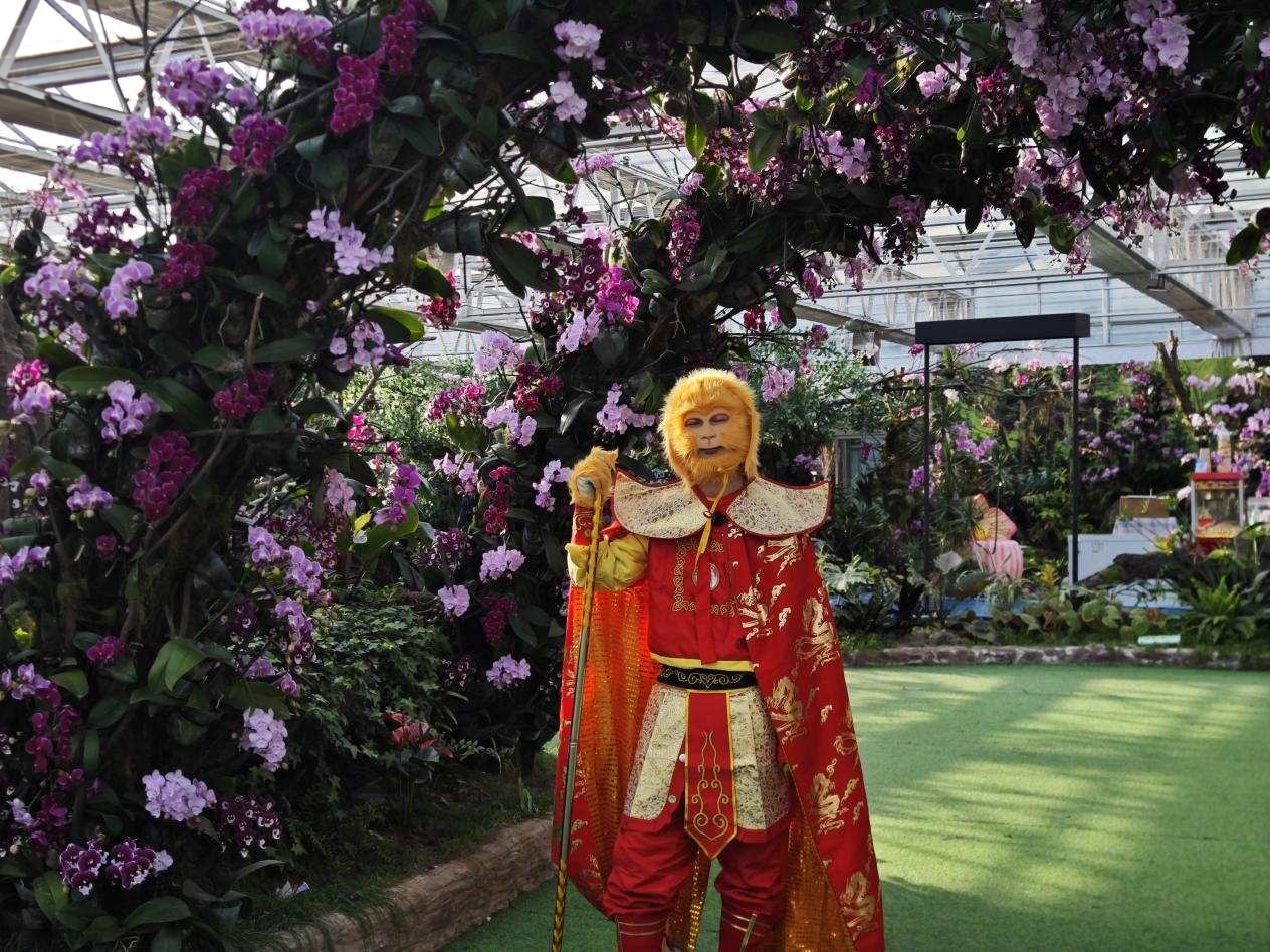 年轻群体则偏爱沉浸式互动与休闲消费,园区针对这一需求持续更新体验内容:古典舞乐演出增设互动环节,游客可即兴参与;闯关游戏融入兰花知识,兼具趣味与科普;NPC互动剧情不断扩展,身着汉服的角色穿梭于花廊之间,带领游客解谜打卡;汉服摄影区提供多样妆造与场景,成为年轻人拍照分享的热门选择。