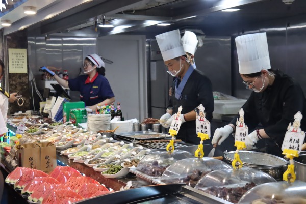 餐厅早已备好热乎的饭菜:海鲜鲜香,热菜暖心,水果清爽,每一口都是“舌尖上的满足”。