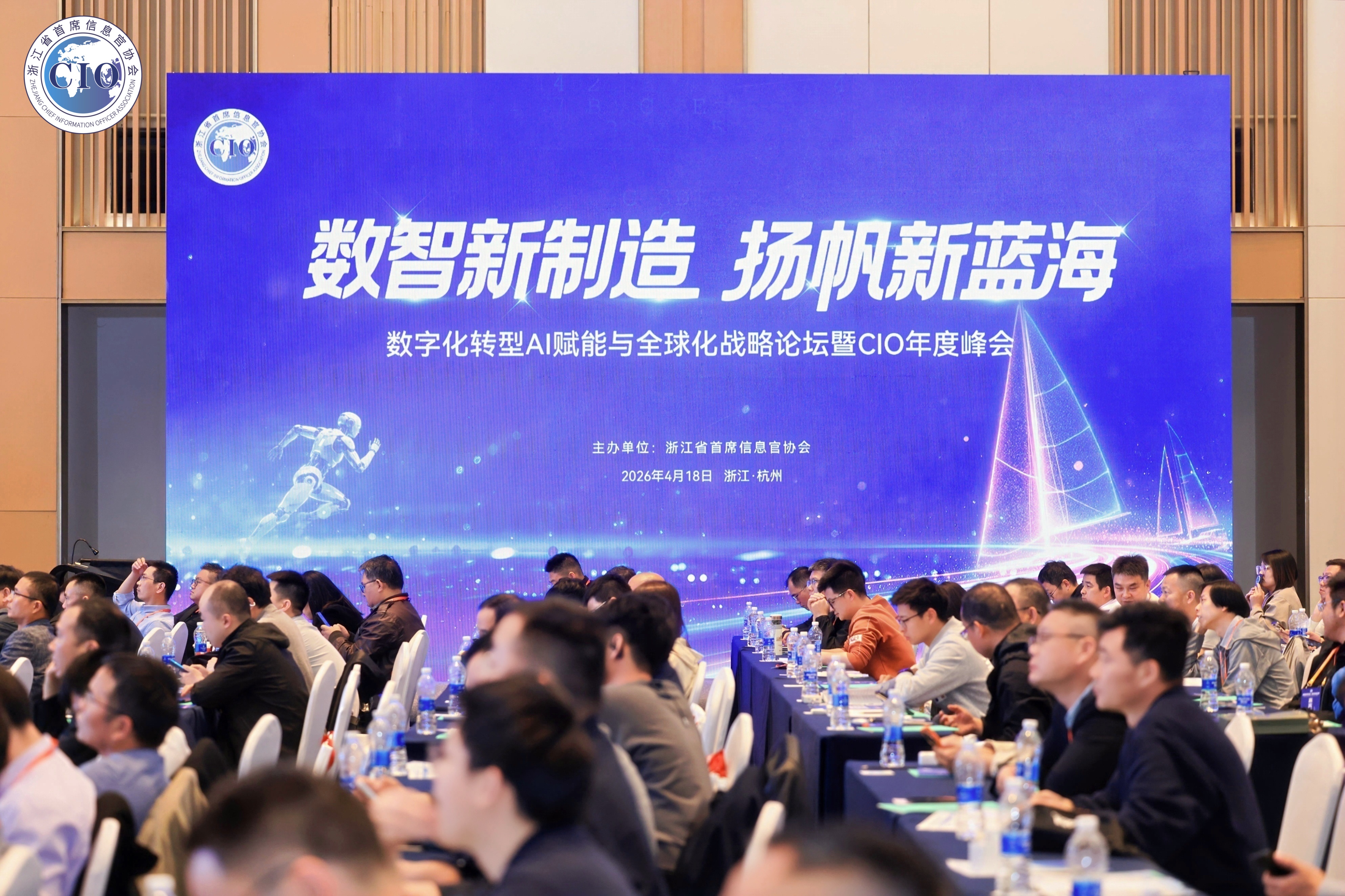 2026年4月18日,由浙江省首席信息官协会主办的“数智新制造扬帆新蓝海——数字化转型AI赋能与全球化战略论坛暨CIO年度峰会”在杭州隆重召开。本次峰会汇聚国内外行业精英、制造业高层领导及数字化领域专家200余人,共探AI赋能、数字化转型与全球化发展新路径。